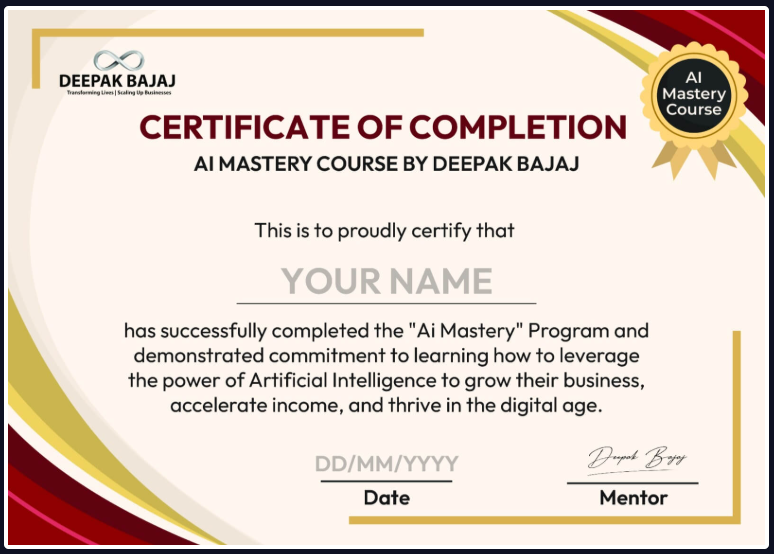 Join Deepak Bajaj & learn step-by-step how to make AI your smartest assistant to create, automate, build, and grow.